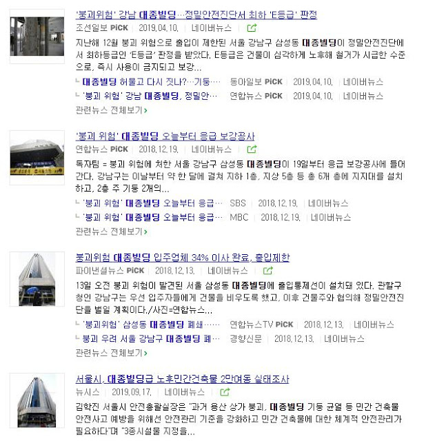 15. 이번 문제가 된 삼성동 대종빌딩의 경우 91년에 지어진 건물임. 바다모래를 썼던 시기의 건물이고 1기 신도시와 같은 시기에 건설되었음.