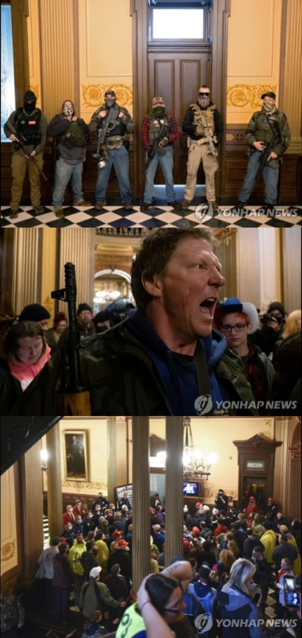 총기로 무장한 시위대 700여명이 미시간주 의회를 점거함.