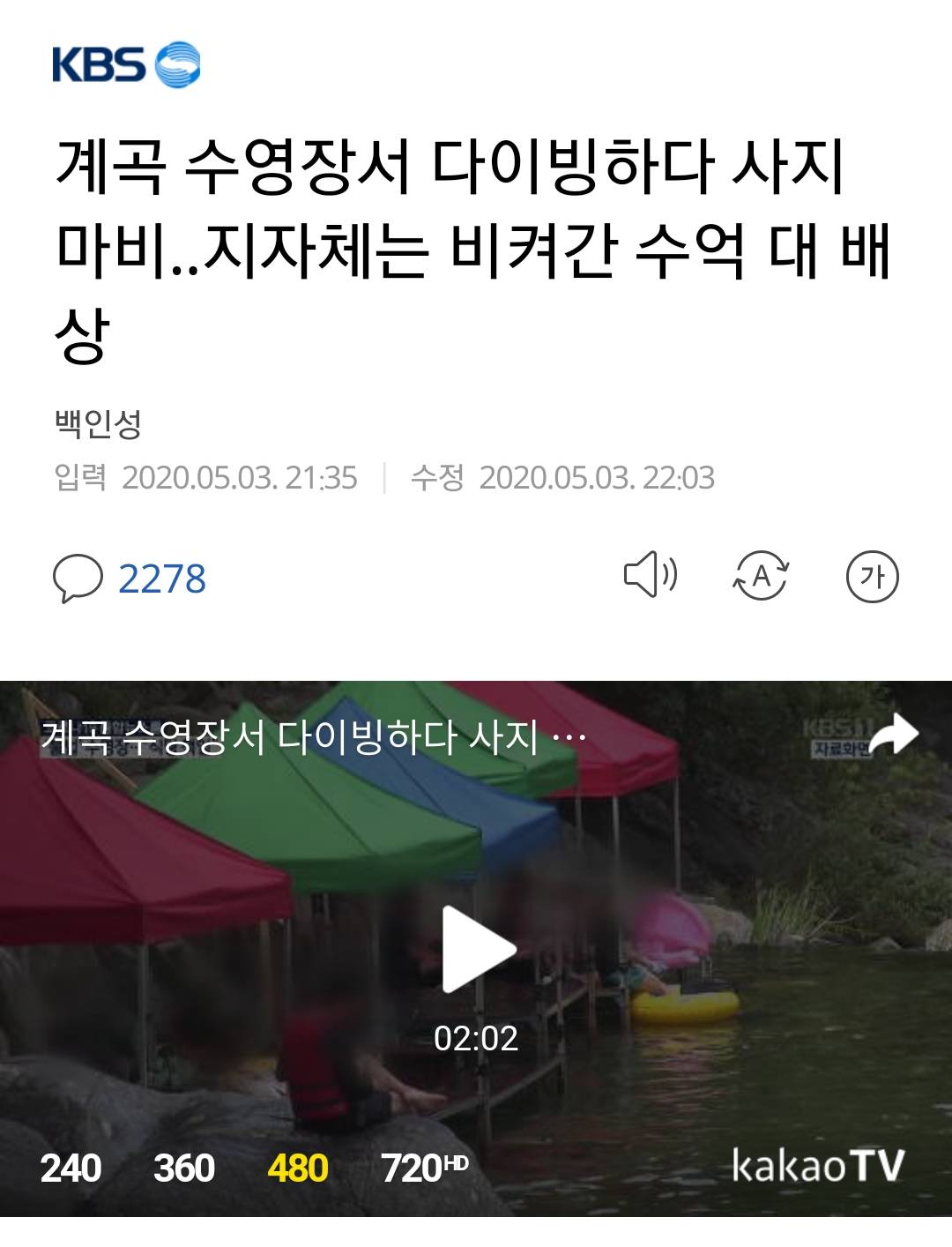 2. 계곡식당 수영장, 다이빙 사고로 대학생 사지마비.