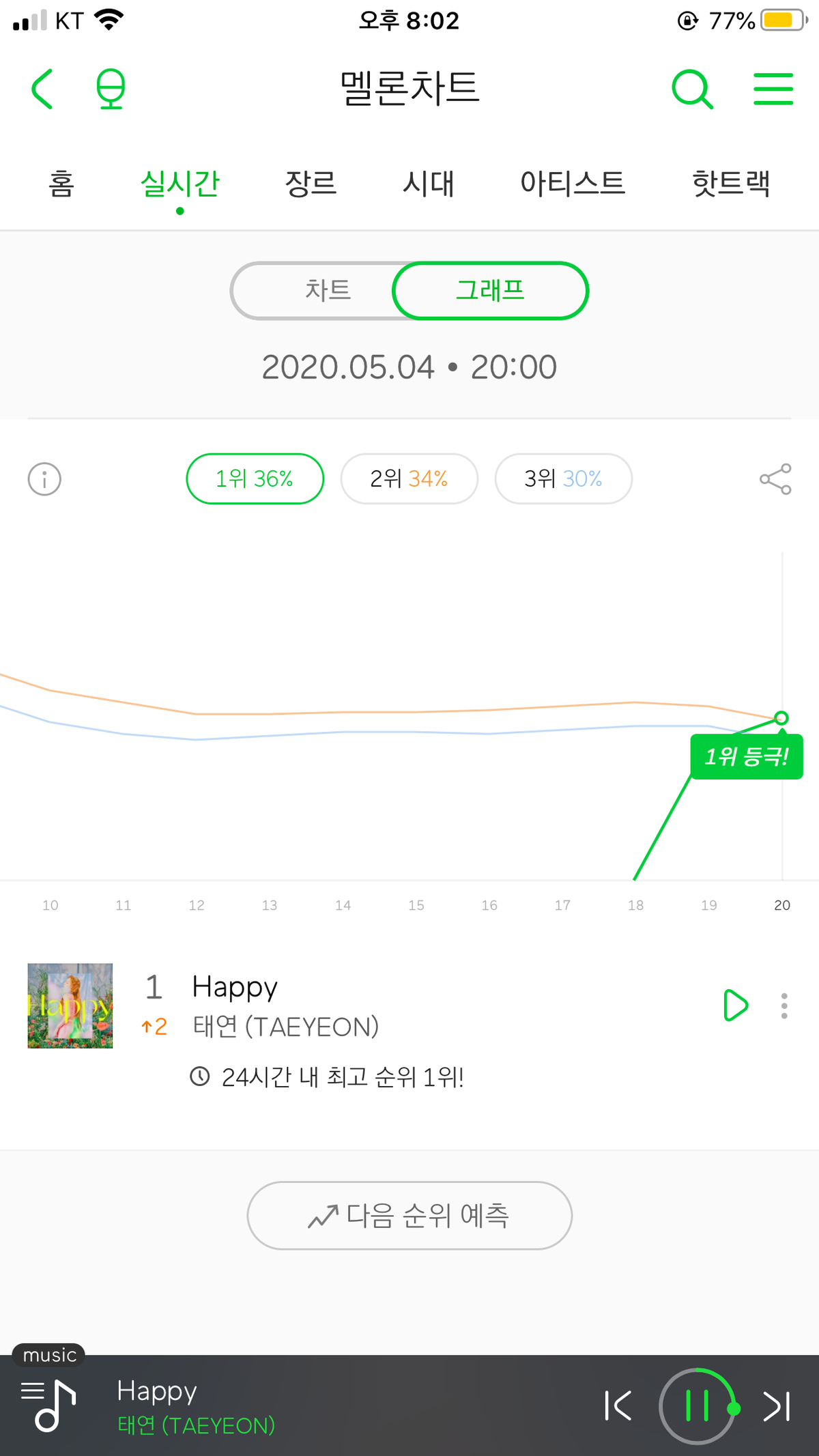 1등이네 요즘은 차트에 사재기꾼들 없나
