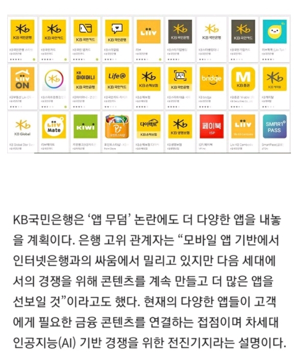 음... KB 가 서비스하는 다른 것들을 통합하면 독점이라 말 나올텐데 되려 거꾸로 가네