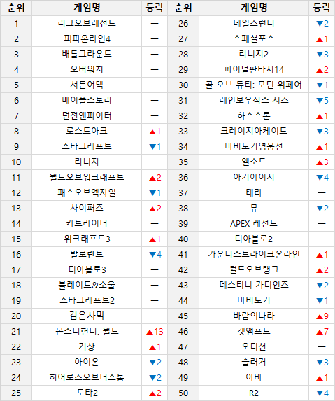 어라 이거 출시했네? 베타때 해보고 노잼이라 관심 끊었는데 5월에 나왔군 인벤 인기순위 저번주건데 출시 시점에도 50위 겨우 했네