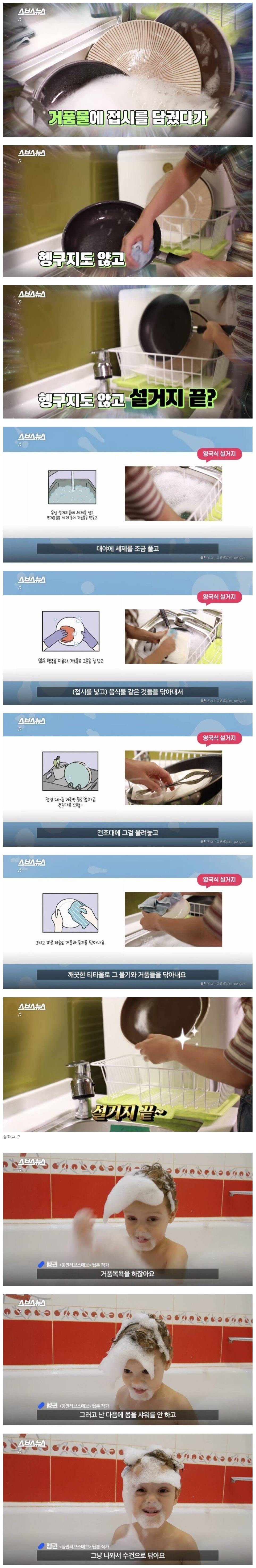 설거지는 옛날에 봤는데 샤워도 이런다고...?
