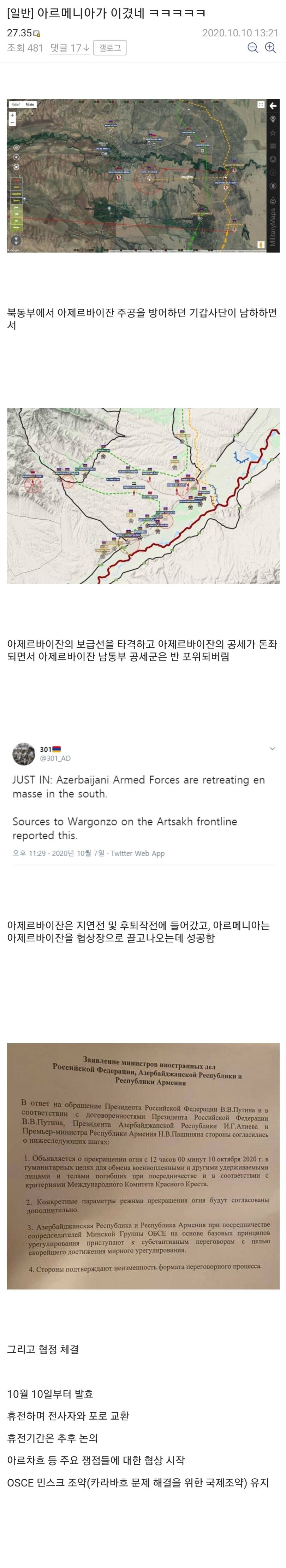 아제르바이잔이 협정무시하고 선빵갈김