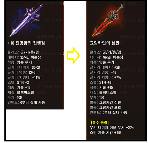 강화주문서 500장(10만원)과 재료템(100만원) 하나로 무기증발없이 인챈트시도가 가능