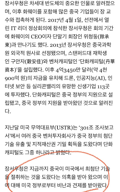 미국 정부는 장교수가 미국기술의 중국 유출 핵심통로로 보고 있었음.