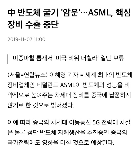 ASML은 그당시 7나노급 노광기를 만들 수 있는 유일의 세계최고의 반도체장비회사였음