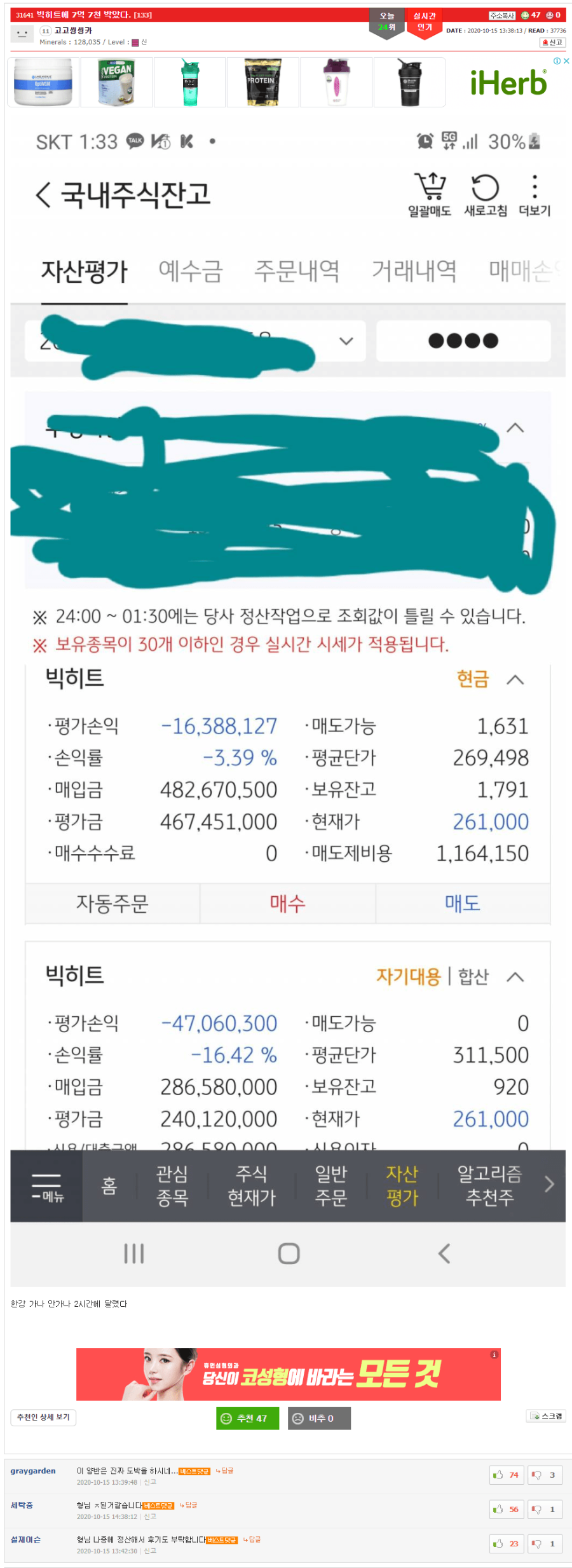 조졌는데 이거 오늘 시장 막바지에 기관쪽에서 유동성 공급 때문에 산거 아니었으면 이미 한강 갔을듯