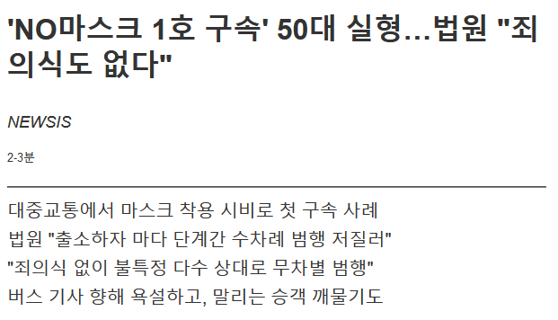 마스크안쓴 것때문에 실형받았다기 보다 그냥 여러모로 범죄자였음