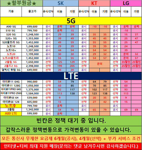 1. 동네 휴대폰 대리점 발품 팔아 할부원금 비교해서 사기