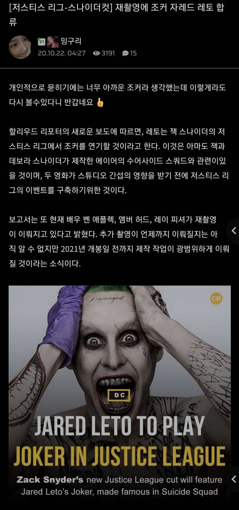 여자애들이 자레드 레토 조커 옴총 좋아하더라고
