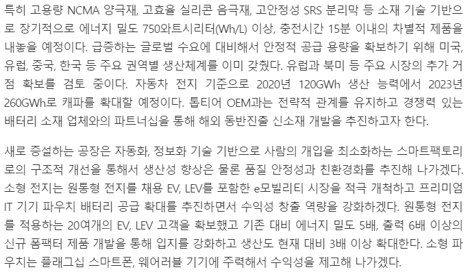 lg화학에서 이번 3분기 어닝 컨퍼런스콜에서 공개한