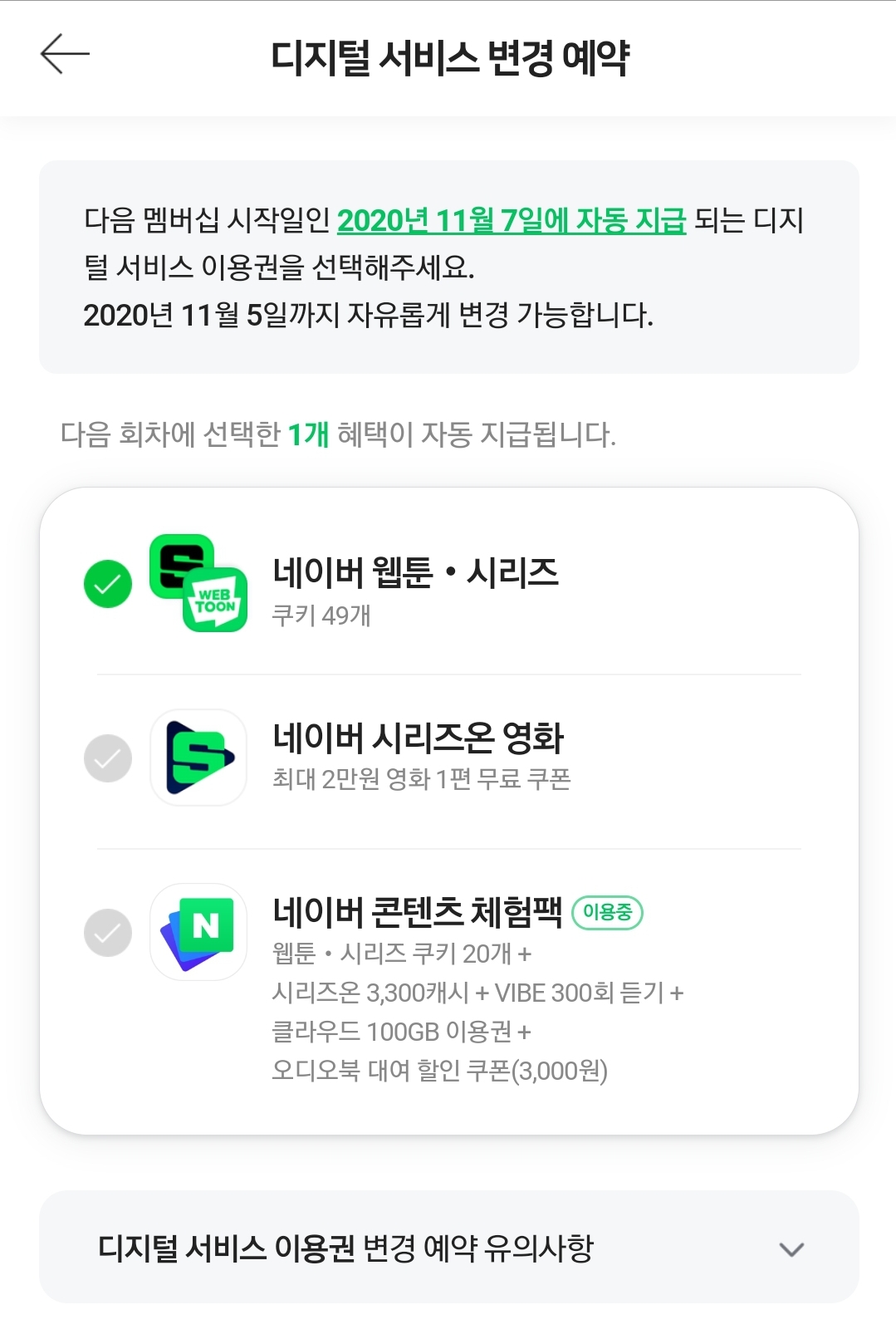 저번달에고른혜택으로 자동적용되서 11월부터나