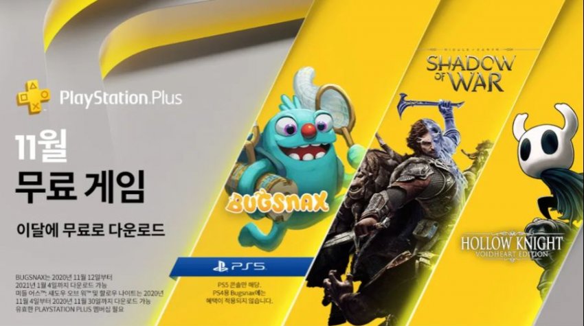 PS5를 소유한 PlayStation Plus 가입자는 PS5 버전의 Bugsnax를 받게 됩니다. 또한 모든 PlayStation Plus 가입자는 미들 어스™: 섀도우 오브 워™와 할로우 나이트를 11월의 무료 게임으로 받게 됩니다