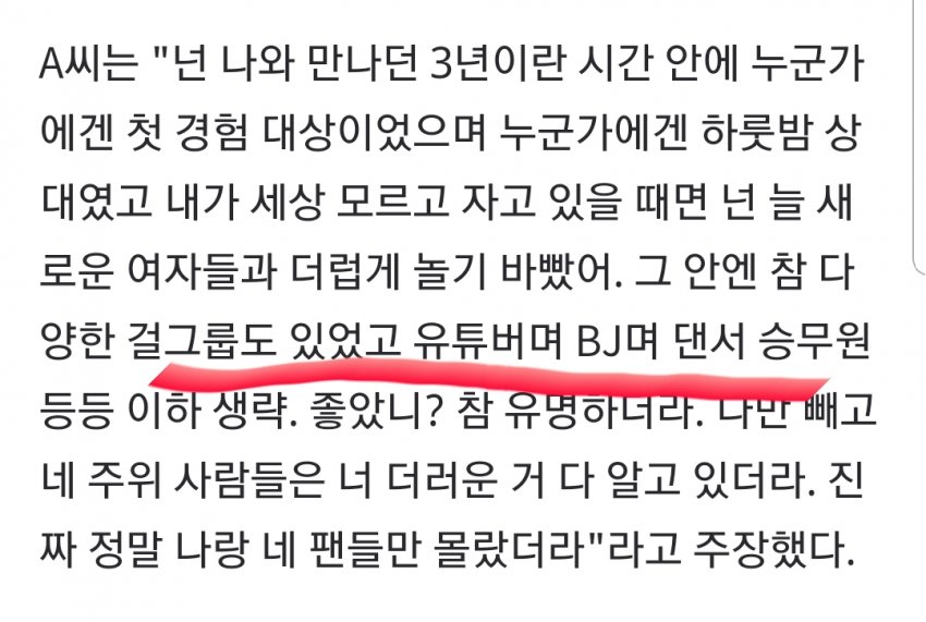 저 여자 주장대로면 자기랑 연애 중에 바람 핀 거 라고 하던데 그거라면 비매너긴하죠