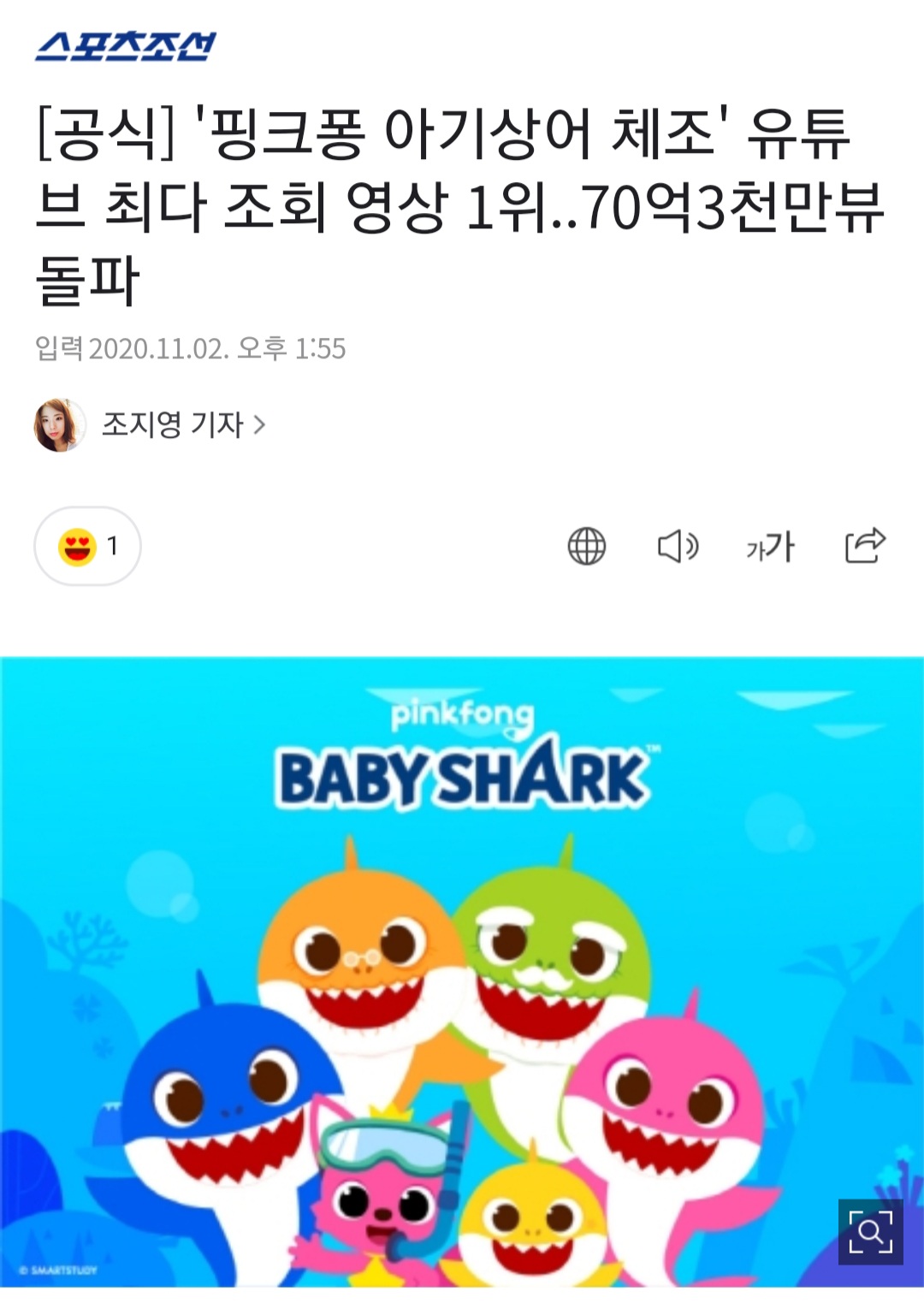 2017년부터 챔피언 자리 지키던 데스파시토를 끌어내리고 아기상어가 유튜브 챔피언에 오름