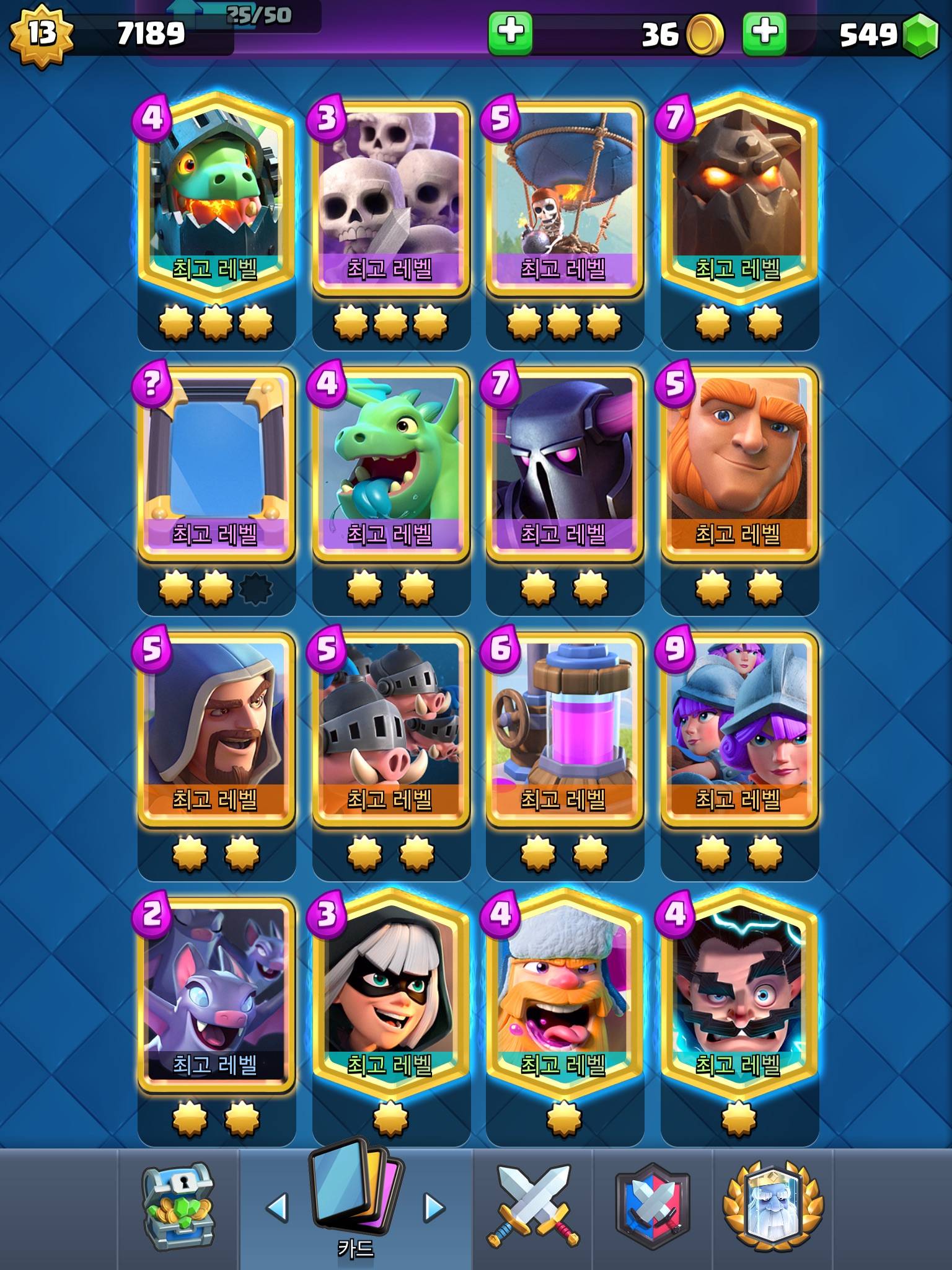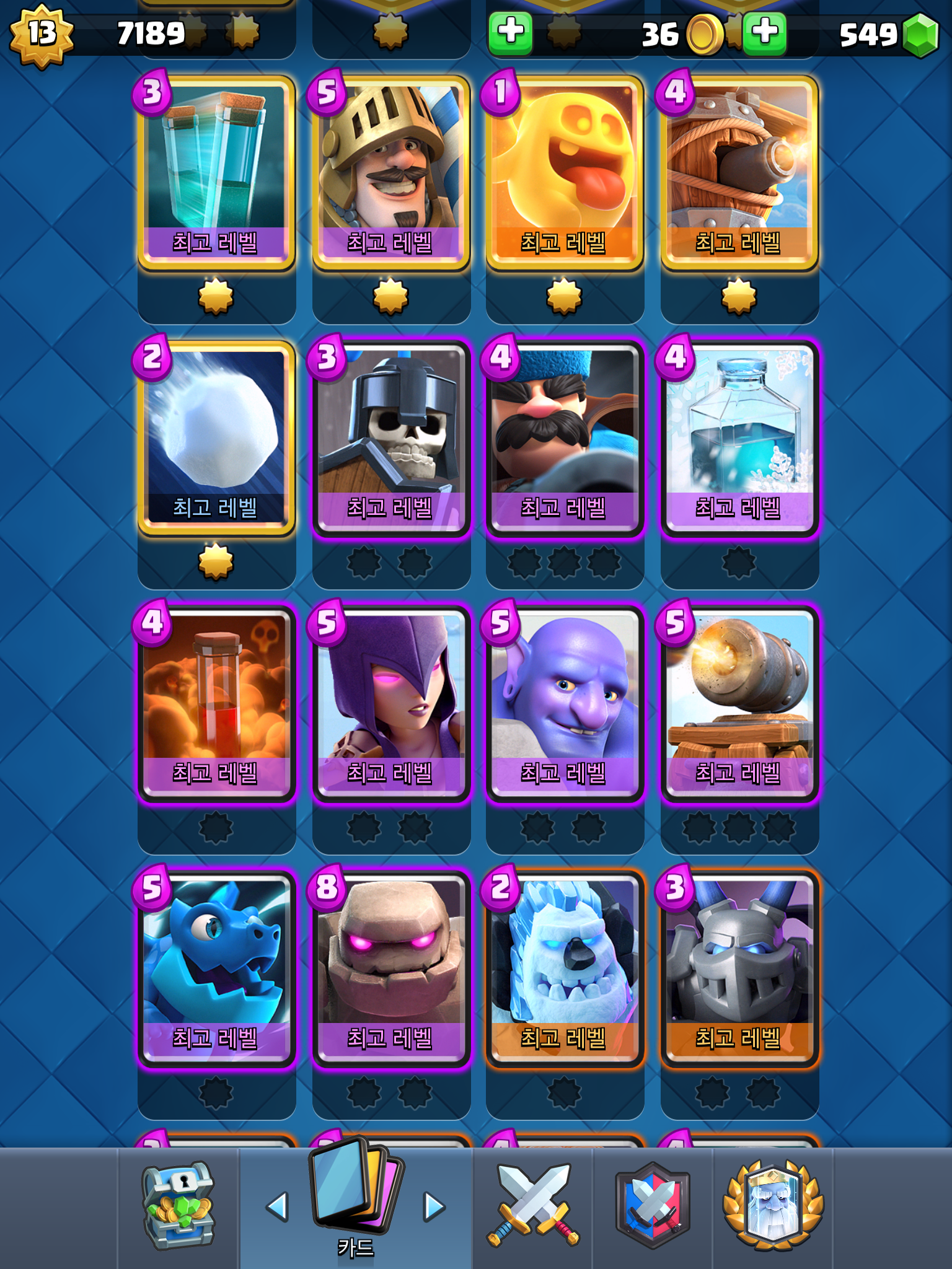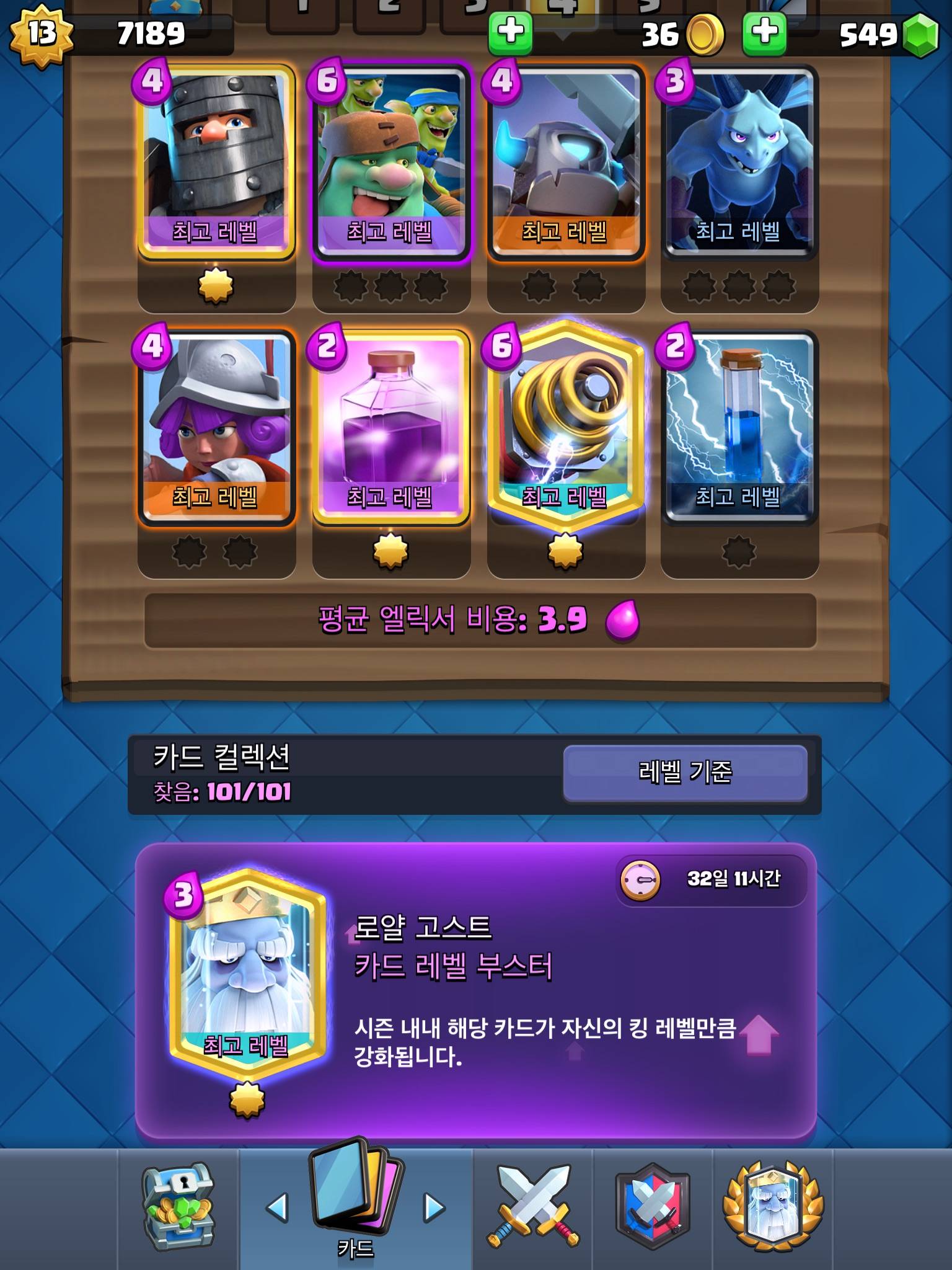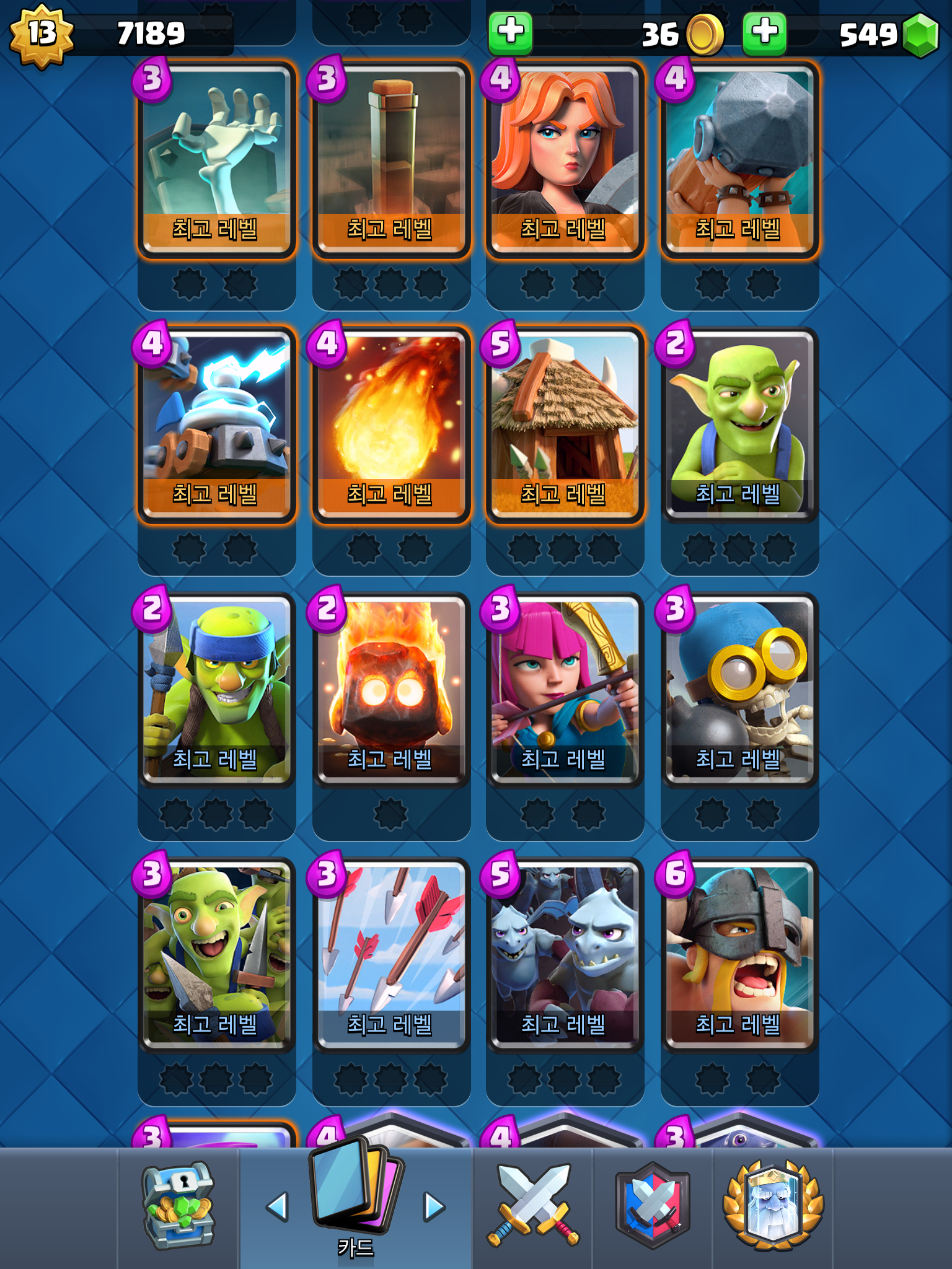 난 주력덱은 거의 만렙이긴한데 골렘덱이 한물가서 그런지 점수가 잘 안오르네