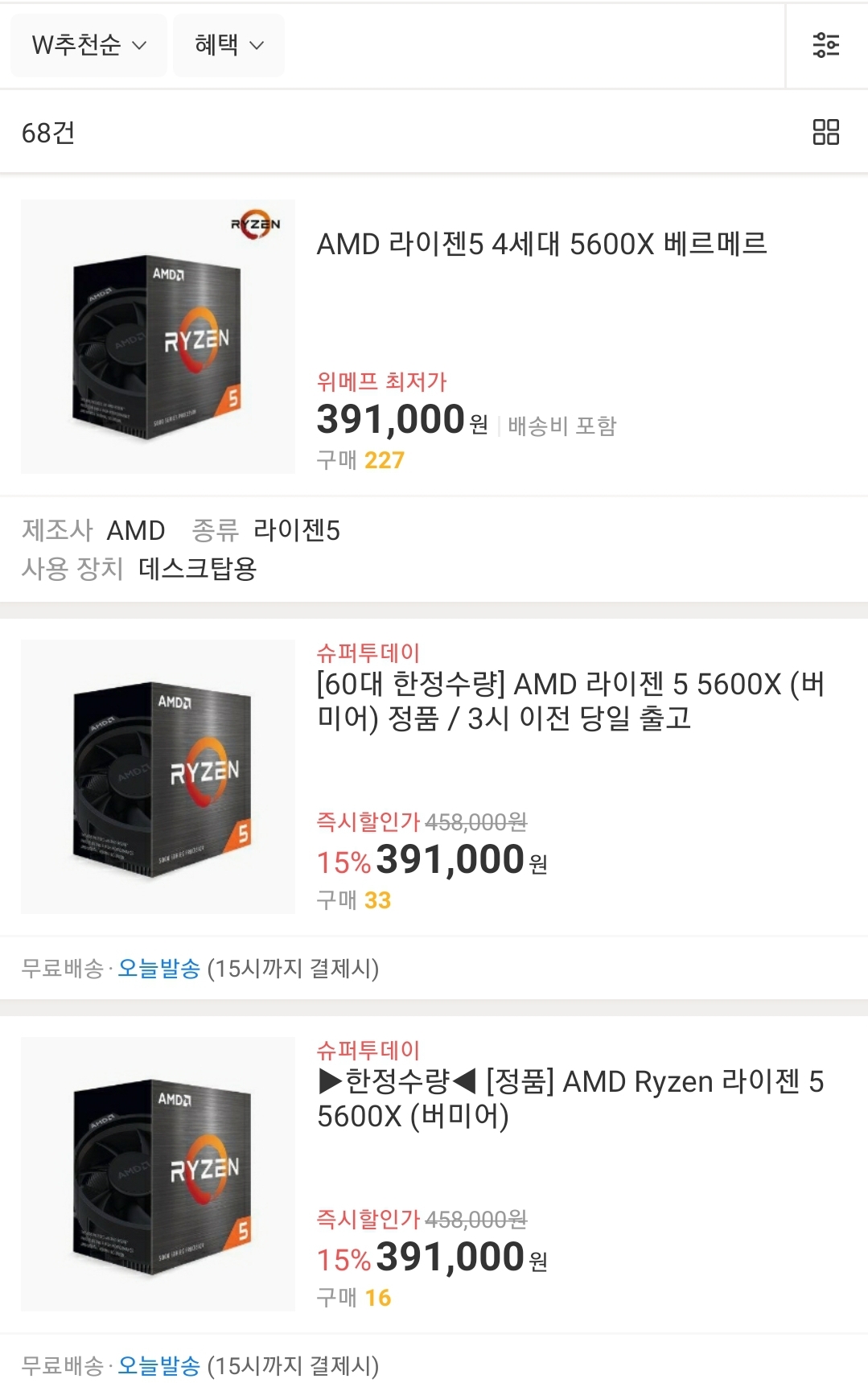 현재5600x가 39만원인데 i7 10700k가 44만원 i9 10900k가 65만원
