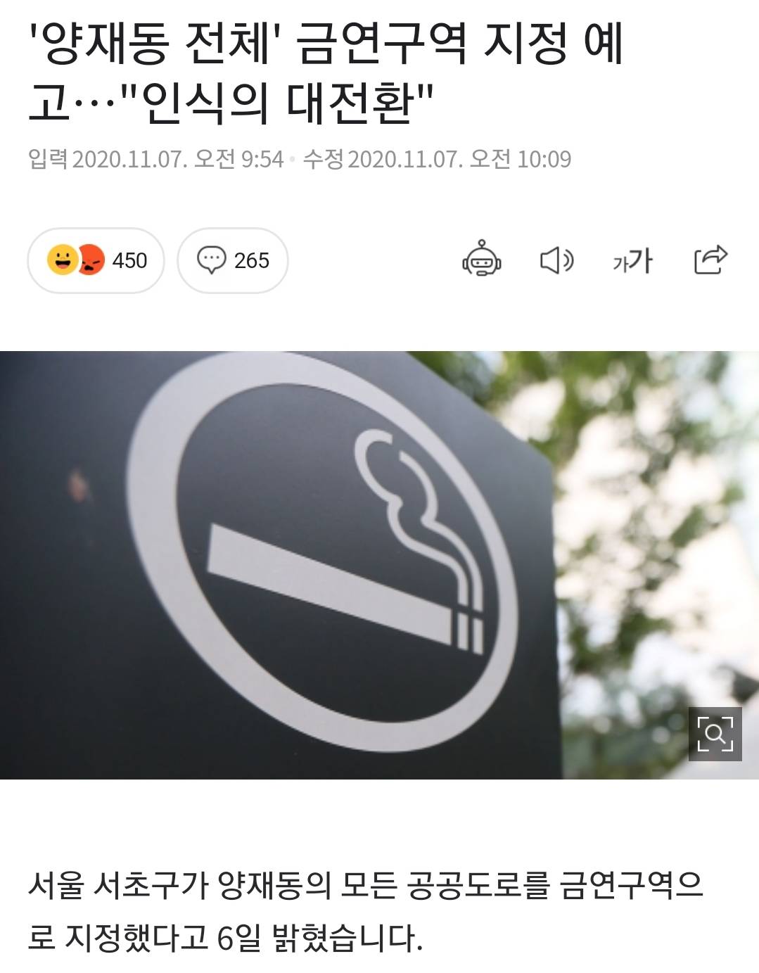공공도로라는게 사람 다니는 길 전체를 말하는건가 흡연구역 아니면 무조건 벌금행이란 소리네 그럼