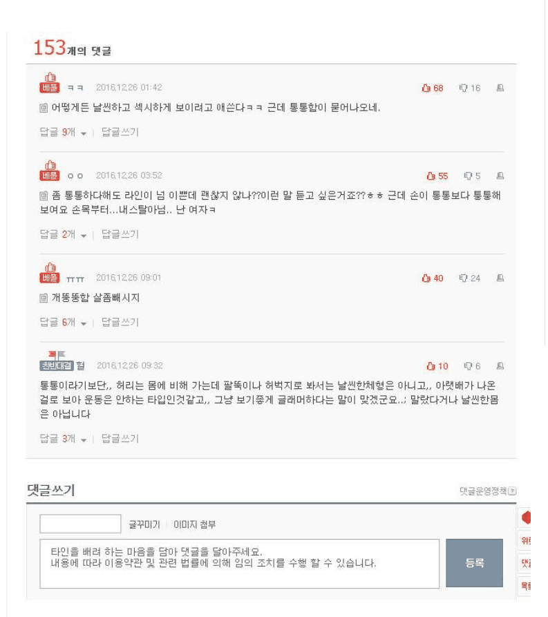 통통한게 어디있어 완벽한 몸매인데