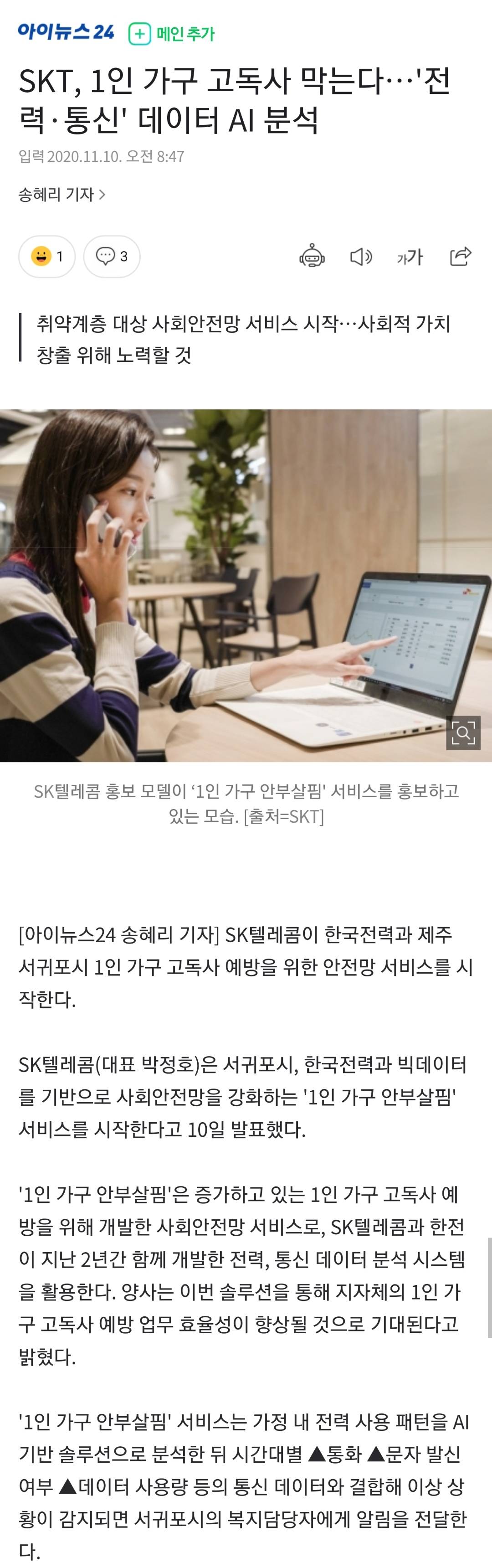 전에도 광고하지않았나 딸이 혼자사는 엄마집 데이터 모니터링(이라 쓰고 스토킹이라 읽는)하면서 긴급상황 챙기는거.