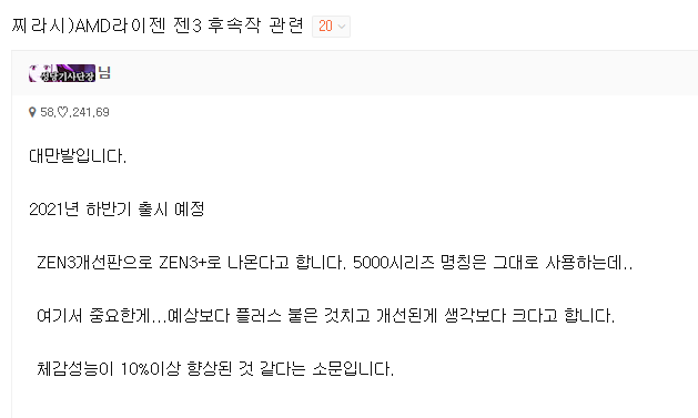 찌라시 출처는 올해 5월에 젠3 성능 향상 개쩜 이라고 흘렸던곳