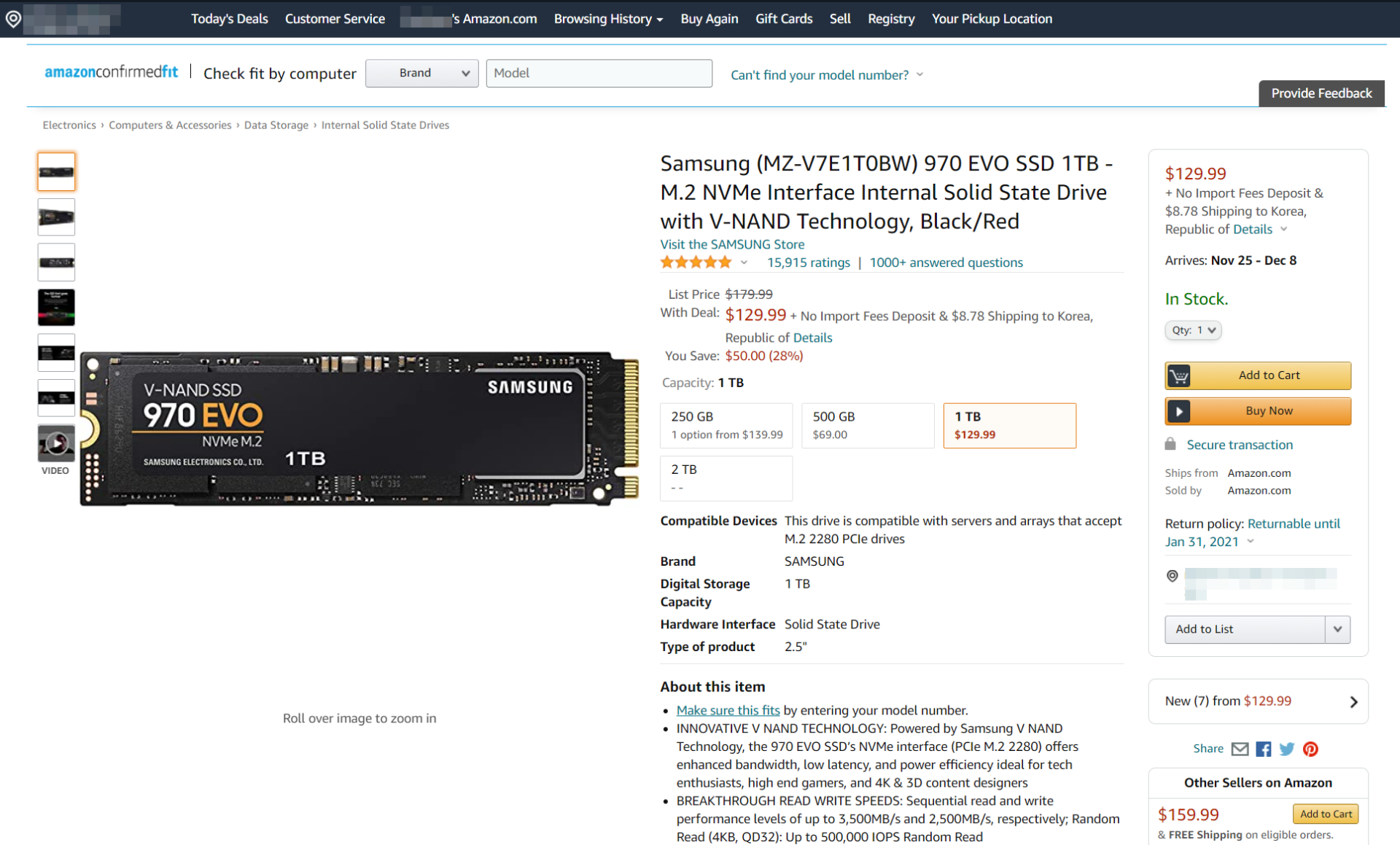 SAMSUNG 970 EVO Plus SSD 2TB - M.2 NVMe 관세예치금 포함 $283.14