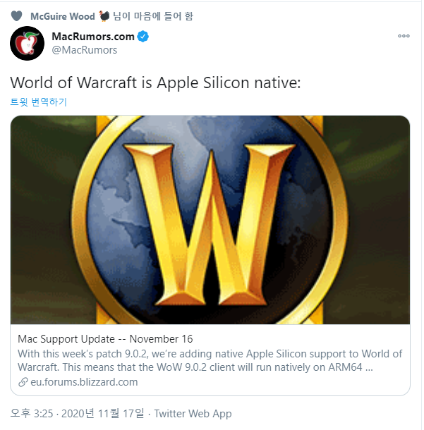 Arm기반 애플 m1프로세서 사용한 맥에서 정식지원