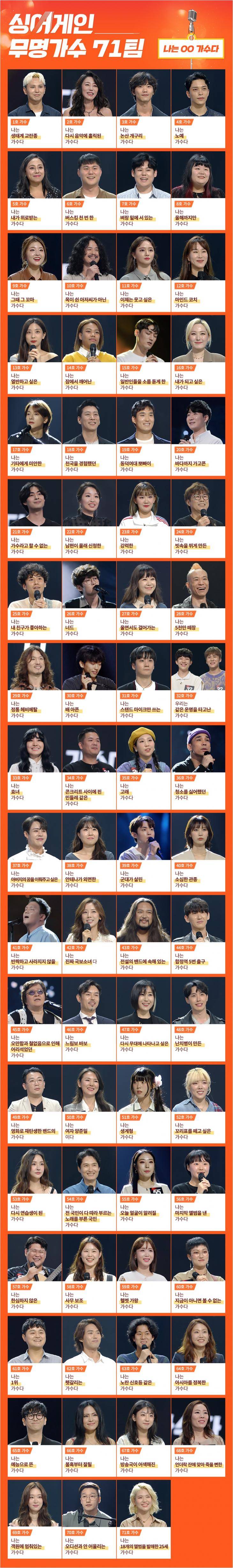 14호 'K팝스타' 이미쉘, 16호 '히든싱어4' 이은아, 20호 '전국노래자랑', '팬텀싱어3' 이정권, 21호 진원, 23호 'K팝스타2' 최예근,