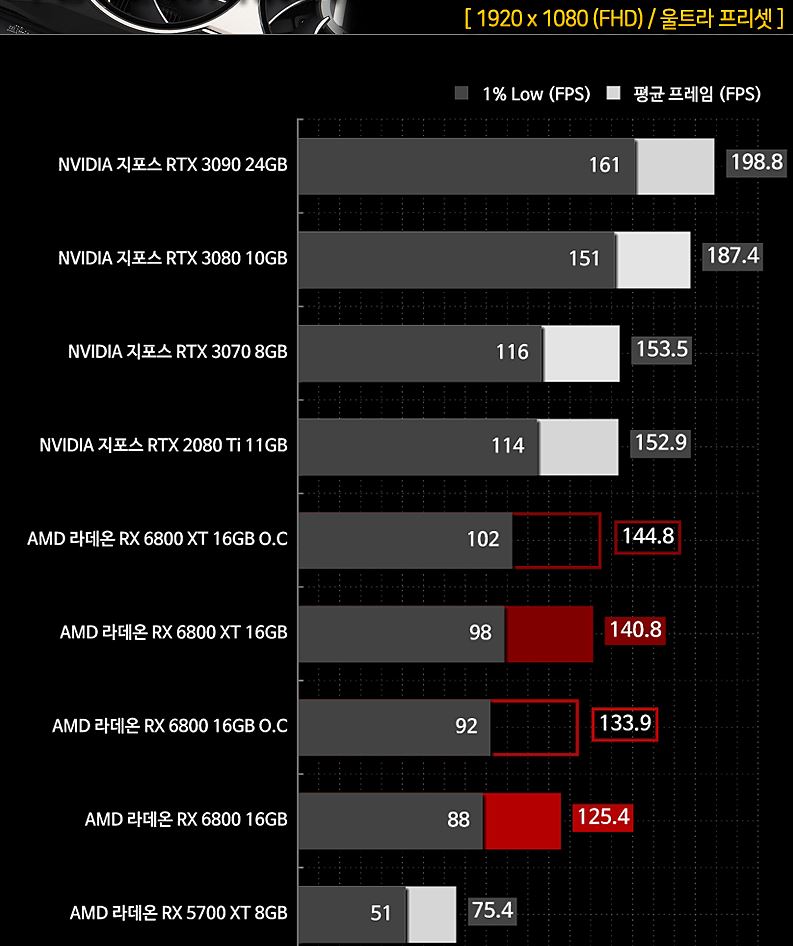 3080이랑 비슷하게 프레임 나오는데 이전 세대 라데온 생각하면 장족의 발전이지
