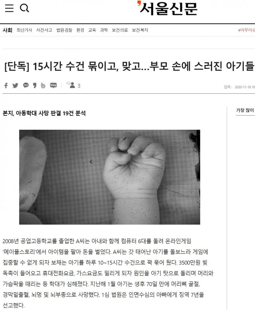 돈 제대로 안벌리니까 애를 70일만에 죽임