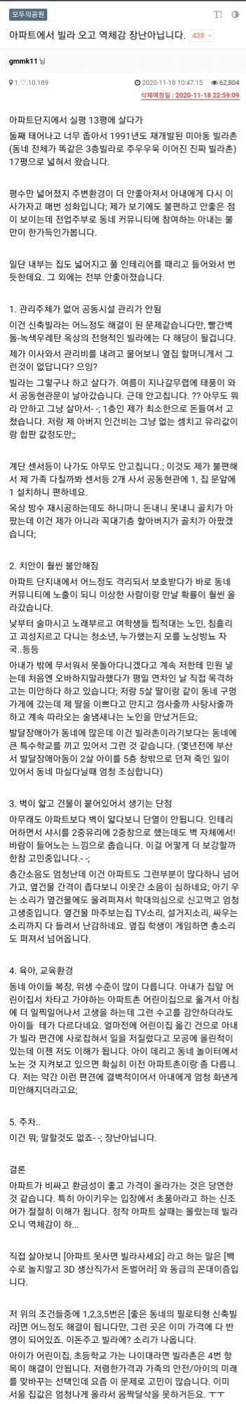 근데 이 글은 지가 썩다리 빌라촌으로 이사 가놓고 징징거리는 거 같은데...