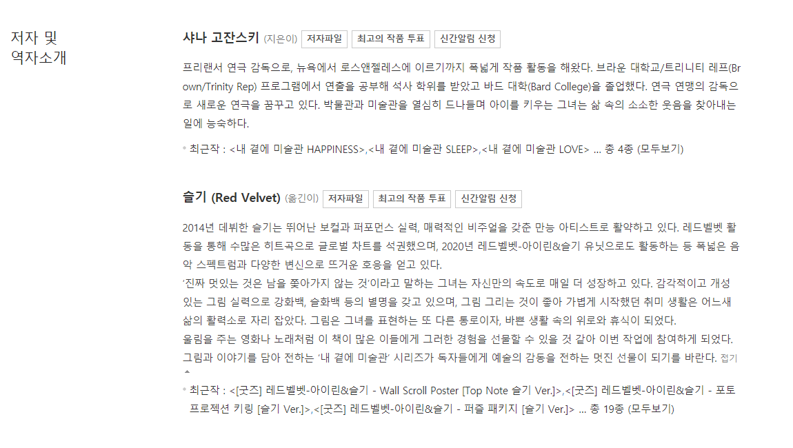 슬기가 역자소개에 올라와있는 아트북 발간.