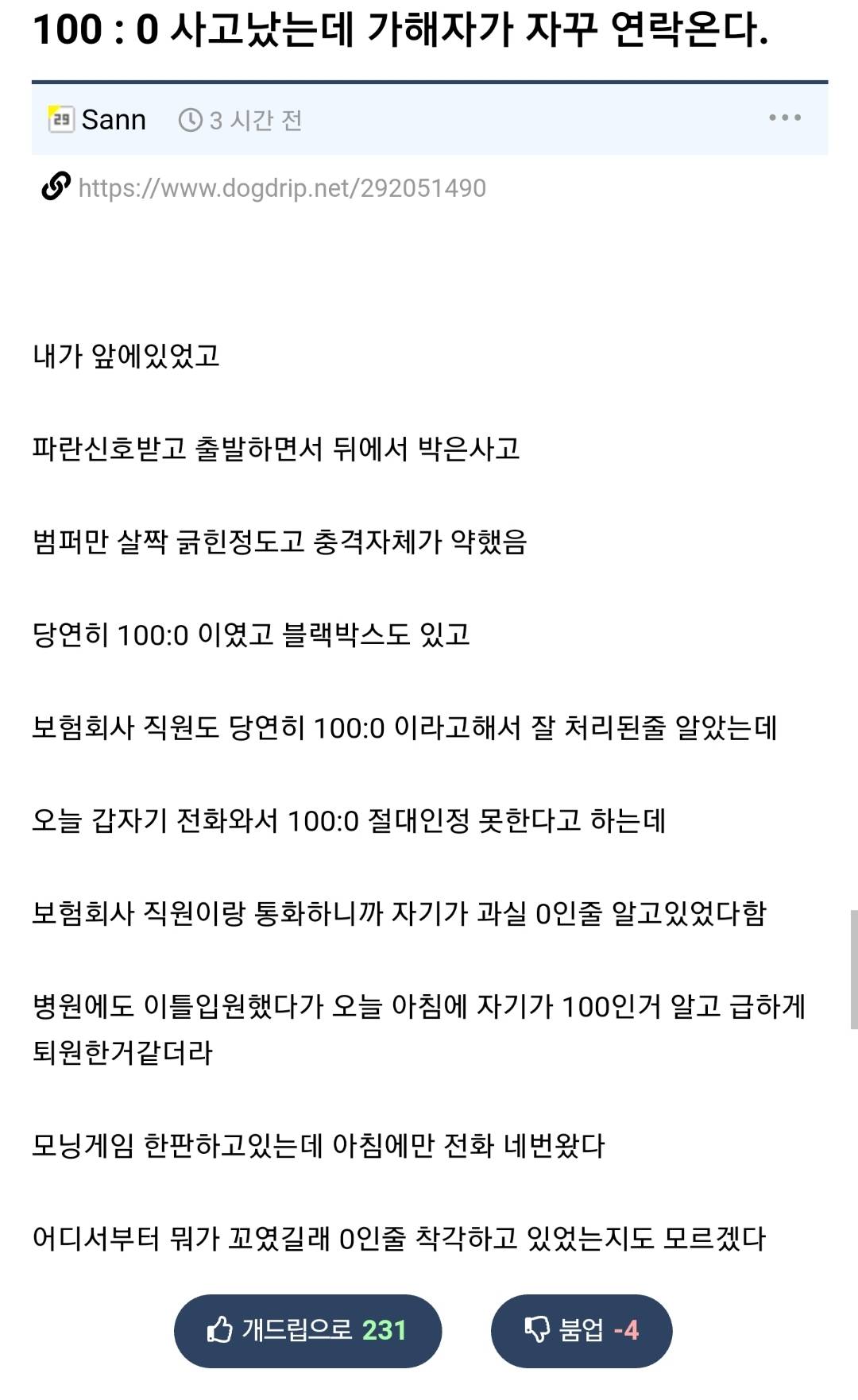 지가 뒤에서 박아놓고 입원하는건 무슨 생각이지