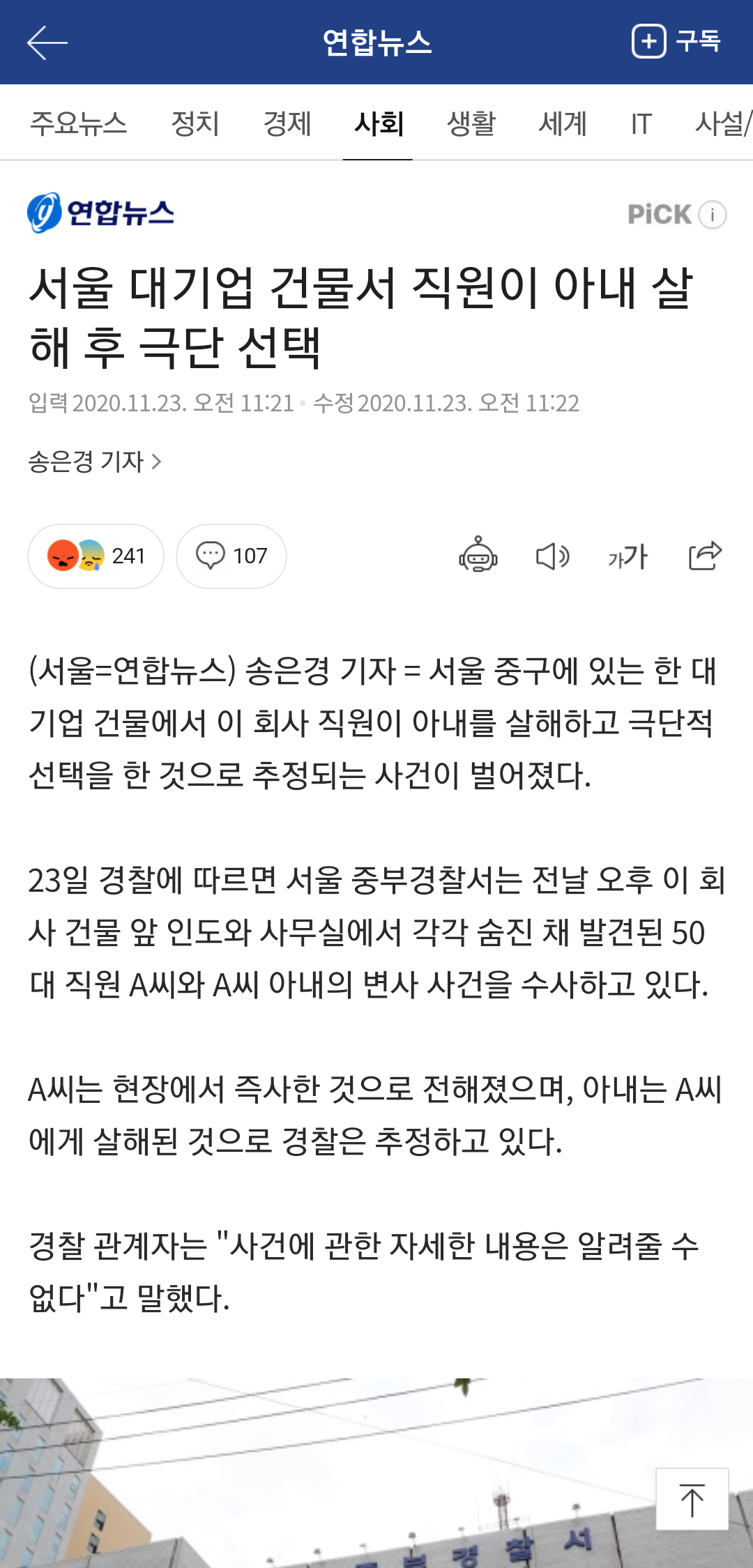 법무팀장 남편이 다른팀에 있는 와이프 찌르고 건물에서 뛰어내려 자살