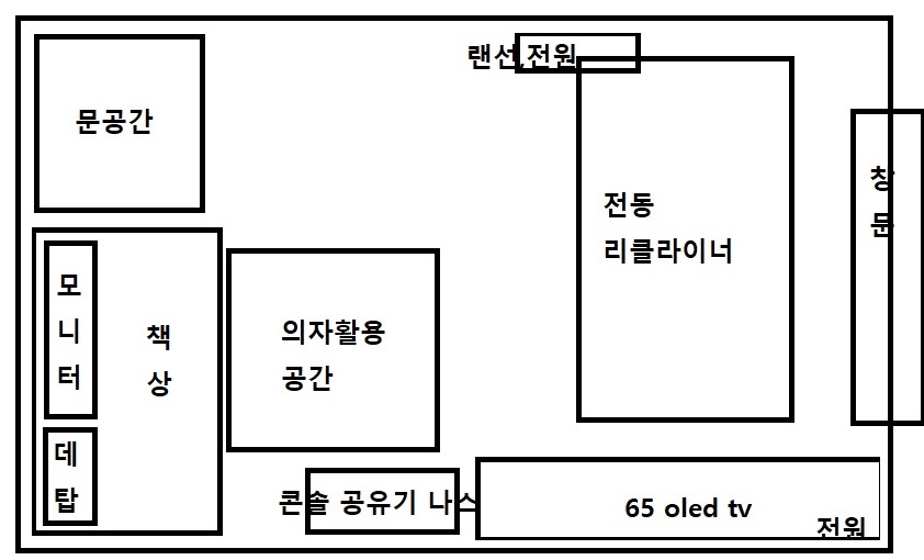 그래서 생각을 한게 걍 방에다가 게이밍 + 영상 전용 전동 리클라이너를 두고
