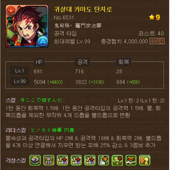 참고로 탄지로는 참으로 부모없는 성능의 역대급 리더 (실제로 없음)