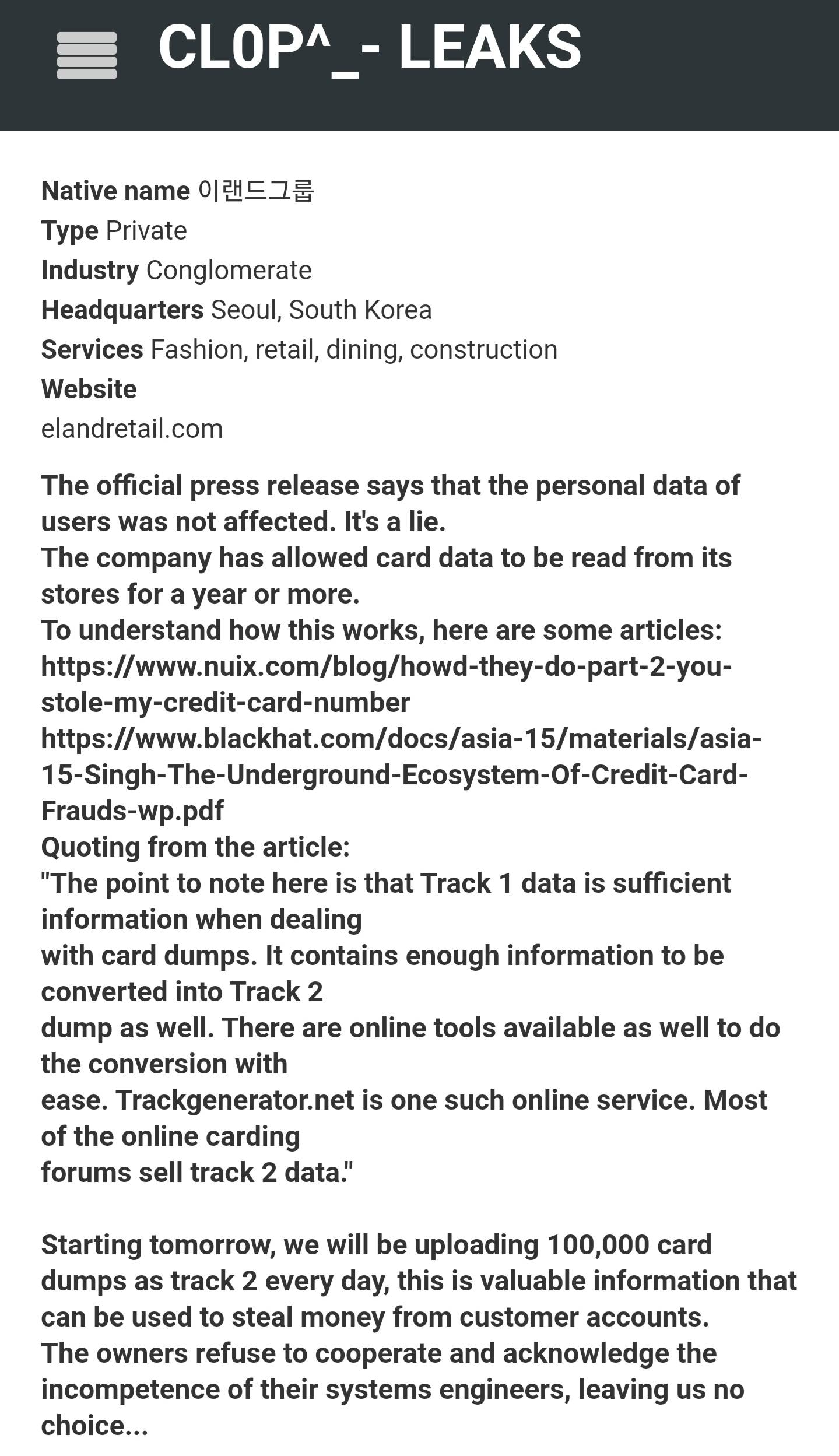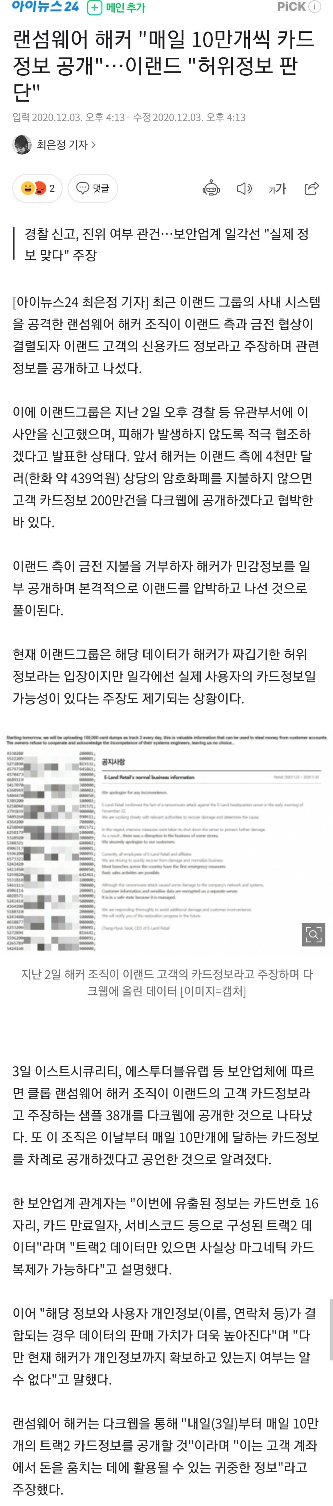 카드 트랙1 데이터 일부 공개했는데 진짠지 뻥카인지는 모름