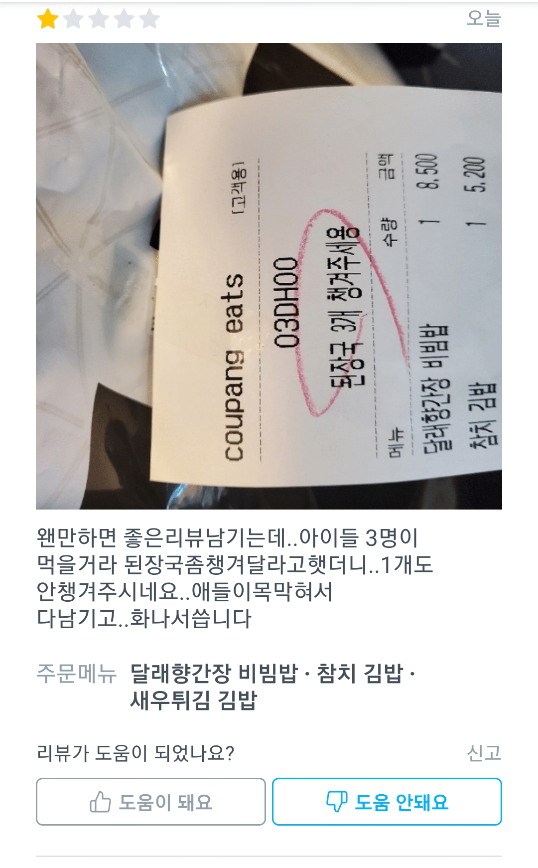 챙겨줄수도있지만 안챙겨줬다고 별1개주는건 인성문제있지