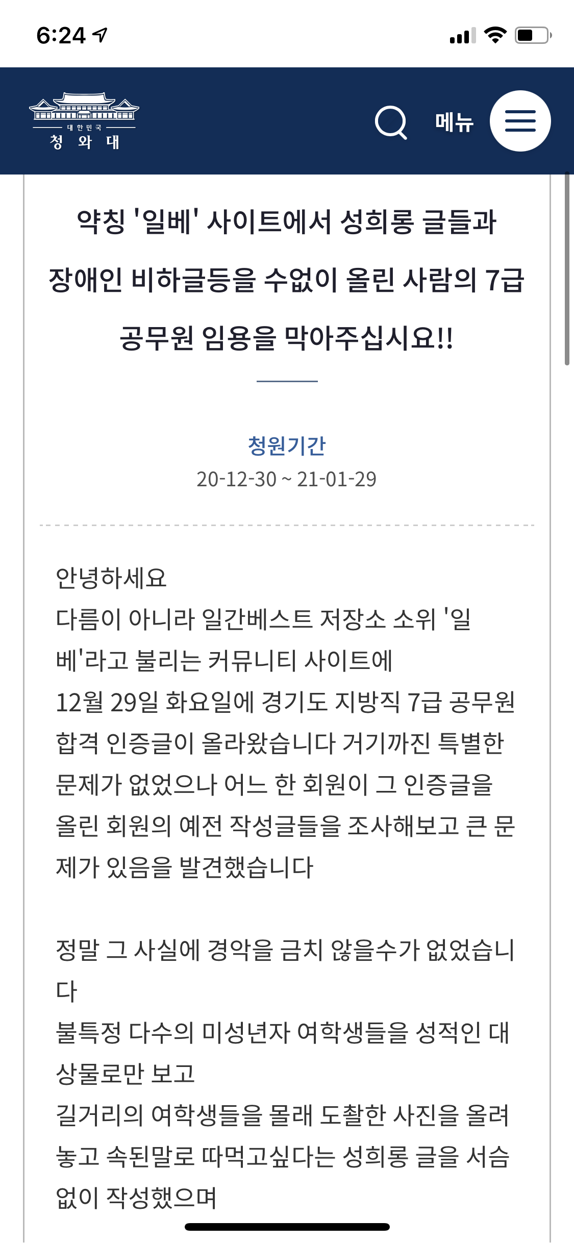 새벽임에도 불구하고 청와대 국민청원에도 올라옴