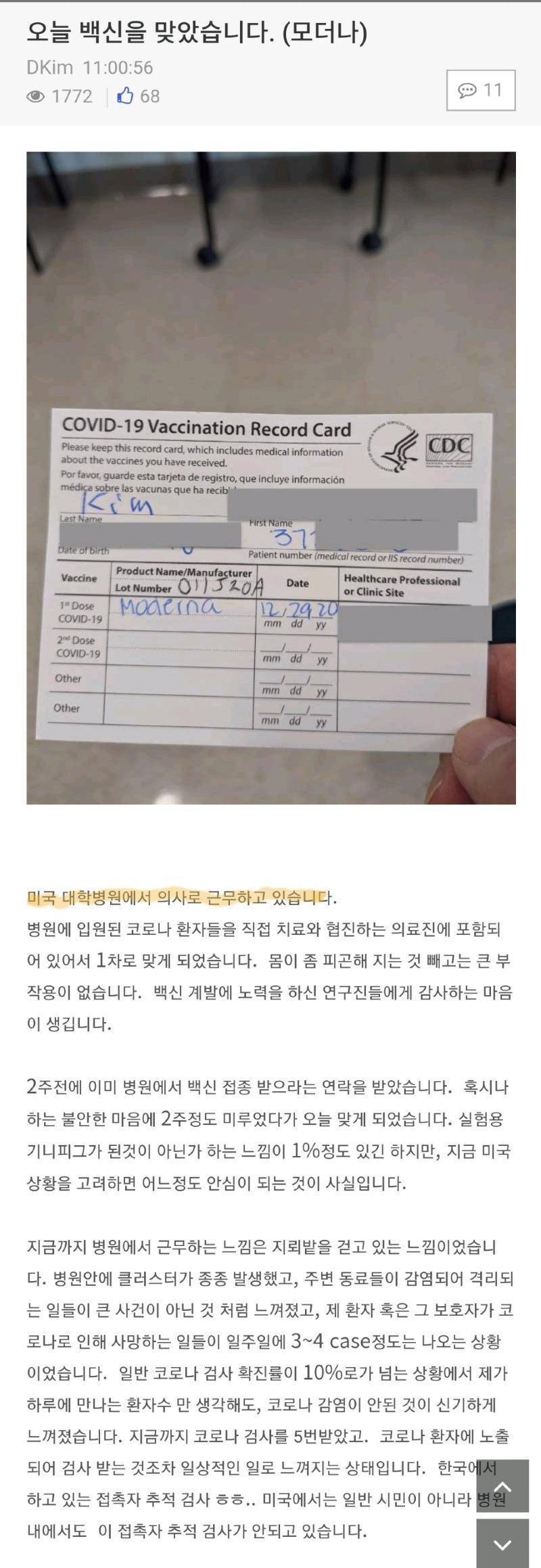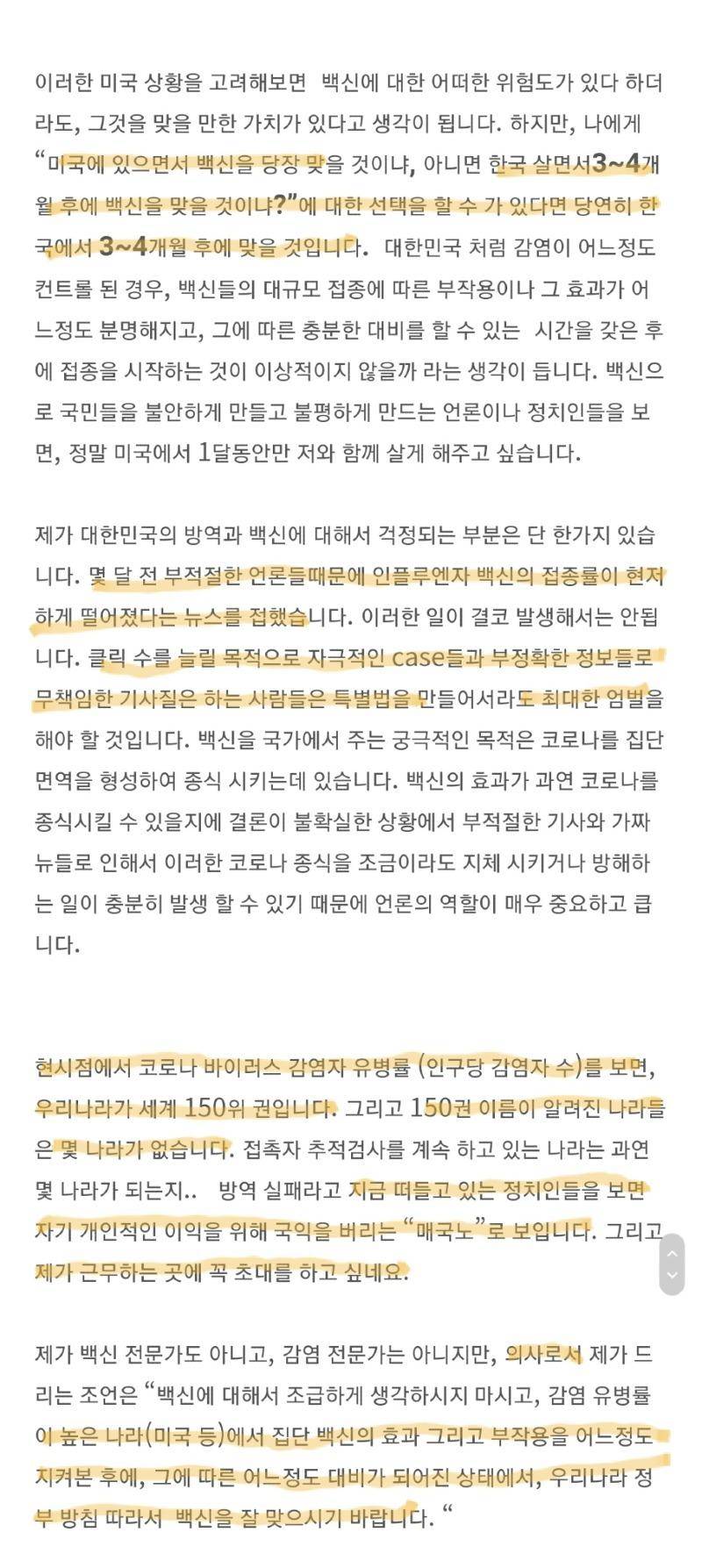 본문을 잘 읽어보면 저 의사도 백신을 맞는거에 부정적인견해를 보인적은 없음. 오히려 백신을 의심하는 것을 걱정하고 있었고 다만 시기의 문제를 얘기하는거임. 판단은 각자의 몫인거고