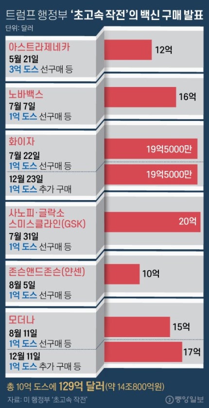 트럼프 행정부 ‘초고속 작전 ’의 백신 구매 발표 그래픽=김주원 기자 zoom@joongang.co.kr