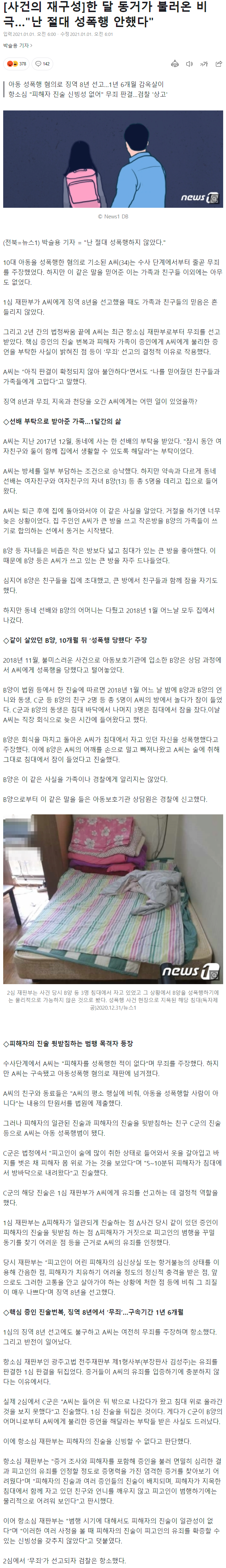 증거없이 증언(일관된 진술)과 C군의 목격담만으로 1심 법정구속 징역 8년.