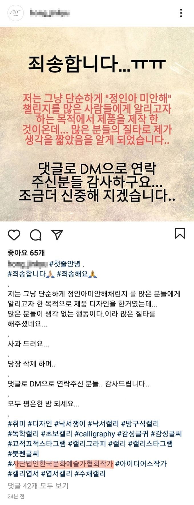 사과문인데 #첫줄안녕 말고도 다른 쓸데없는 광고용 해쉬태그가 겁내 많다보니 요만큼도 진정성이 안느껴진다