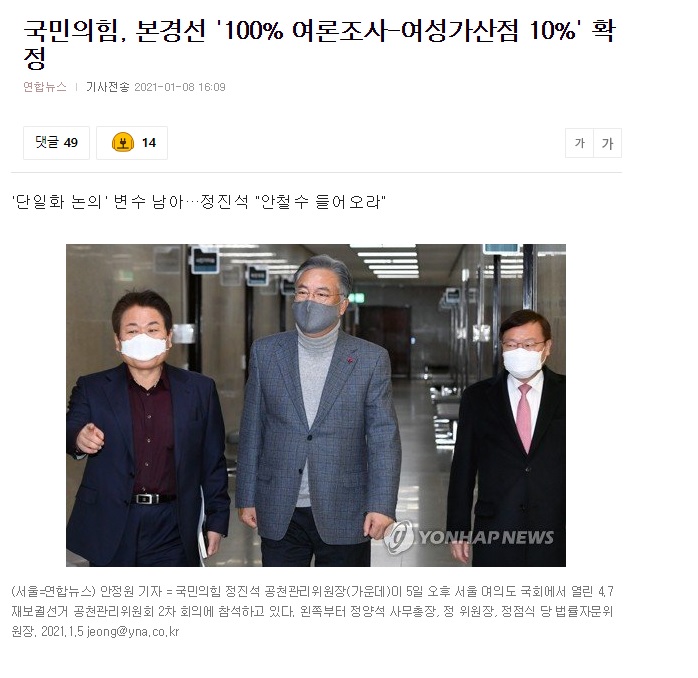 그와중에 여성가산점 10%를 룰에 넣은건 걍 자기네 유력 후보인 나경원 밀어주자는거지