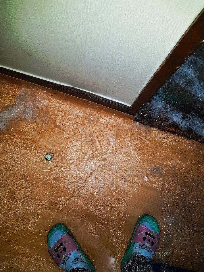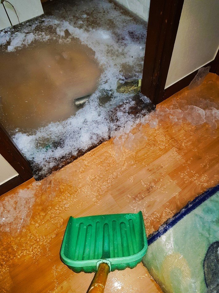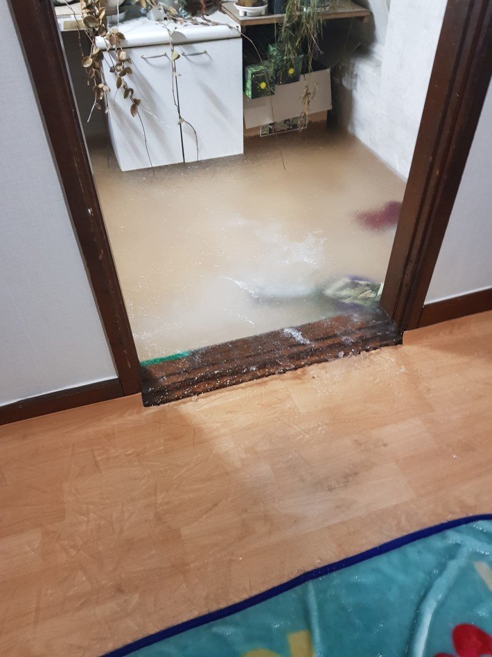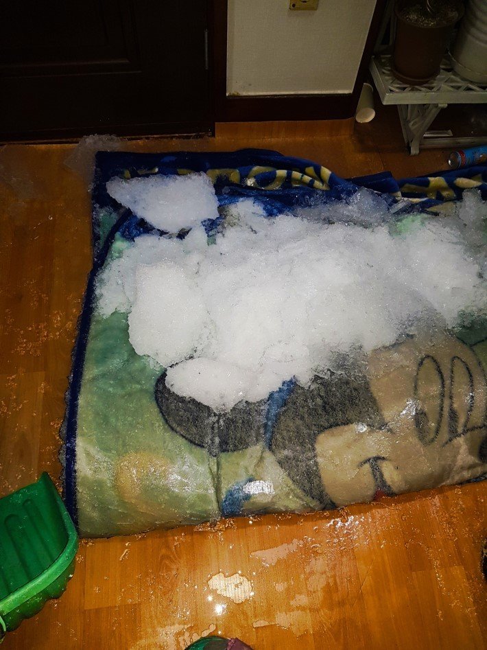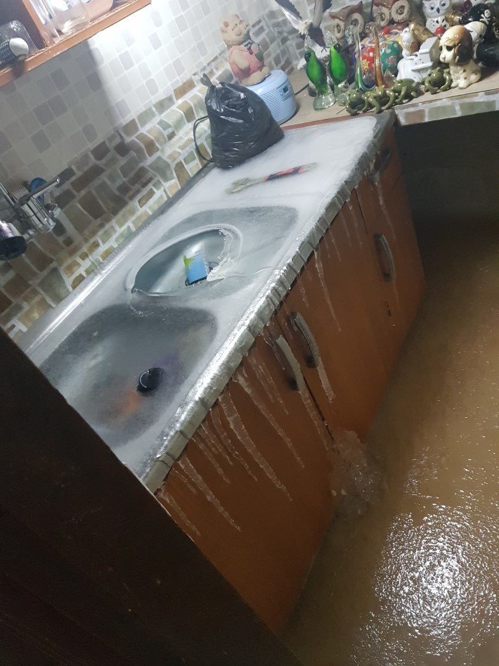 싱크대 물 빠져나가는곳이 얼어서 넘친건가?