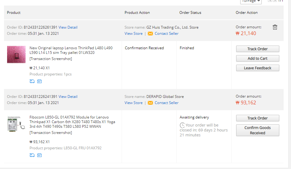 제품 종류는 맞는데, FRU 넘버라는게 내가 주문한거랑 다른게 왔네
