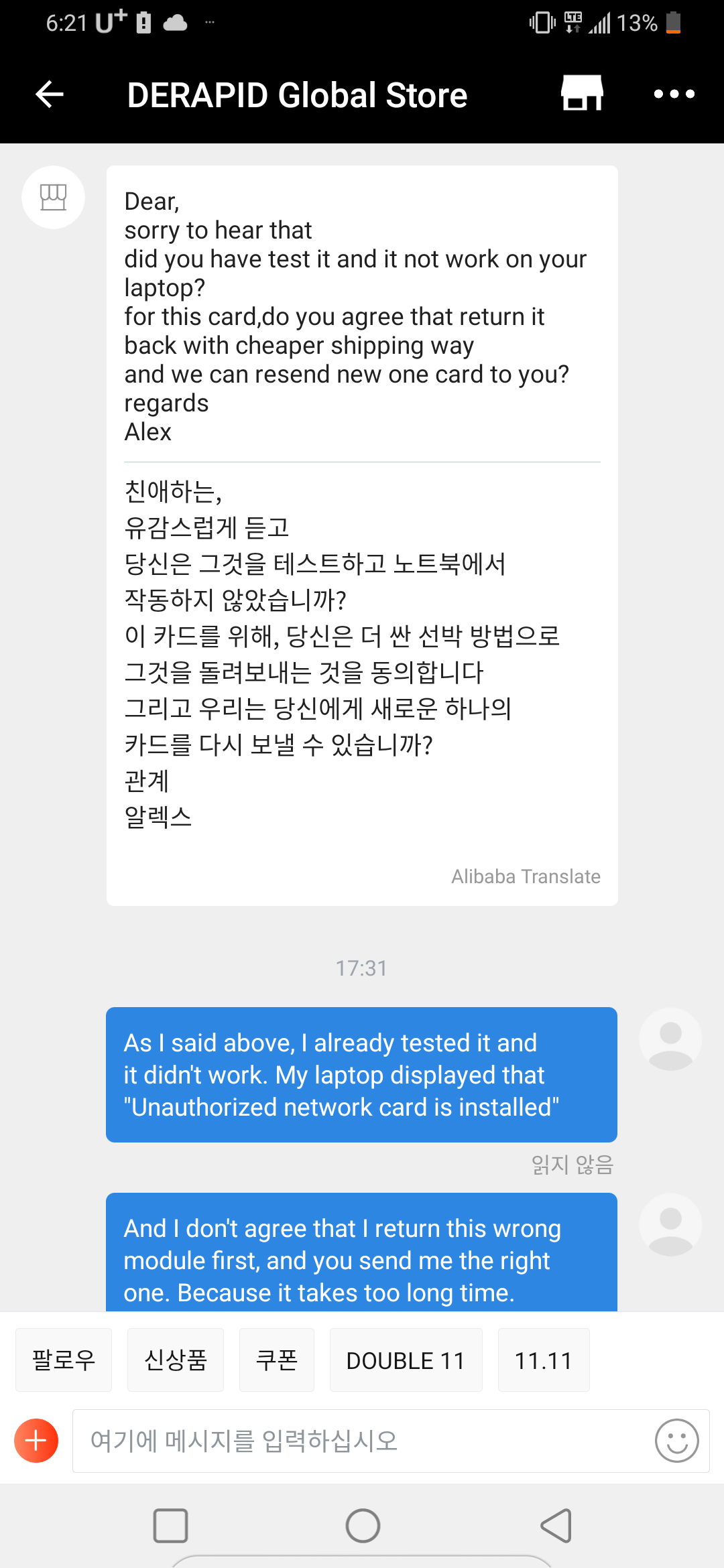 이말이 나보고 배송료 물라는거 아님? 아니 물건 잘못보내서 괜히 노트북 하판 두번이나 뜯고 시간낭비한것도 짱나는데 배송료도 물라고?