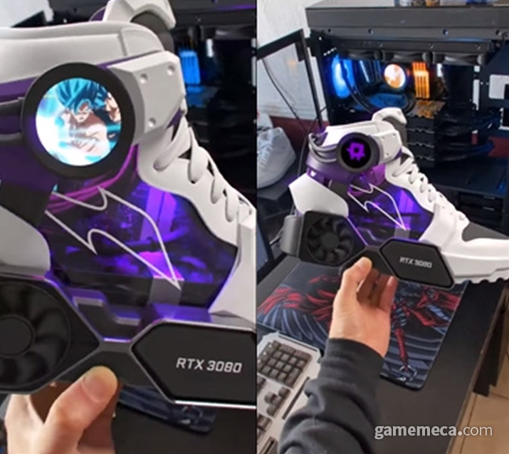 신발과 그래픽카드라는 생소한 조합답게 신발 밑창 부분에 RTX 특유의 쿨링 팬이 장착되어 있는 것이 특징.