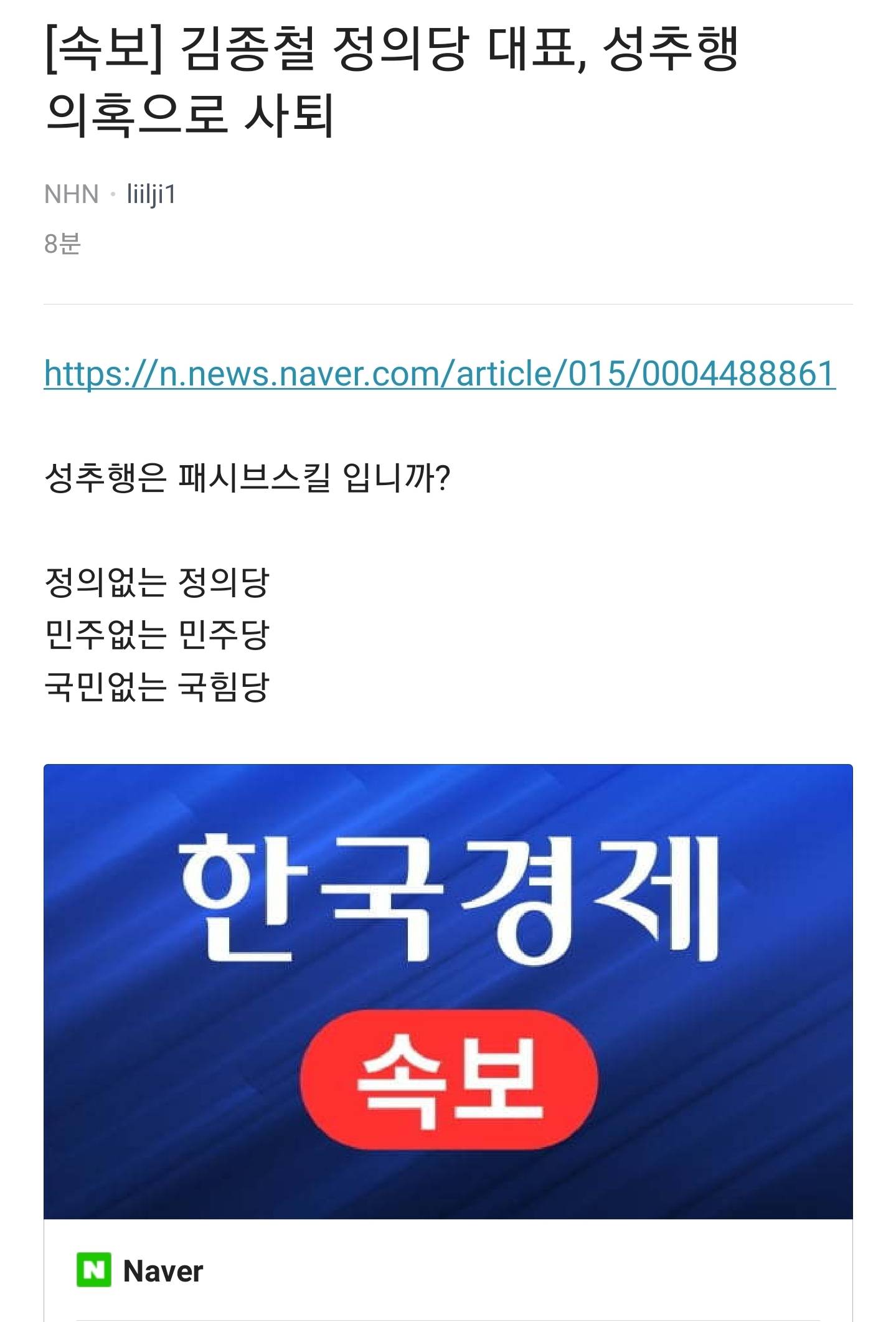 근데 메갈당이라고 손가락질 받던 페미당에서 이런거 터지다니 존나 웃김 남페미는 정신병자 맞는것 같다